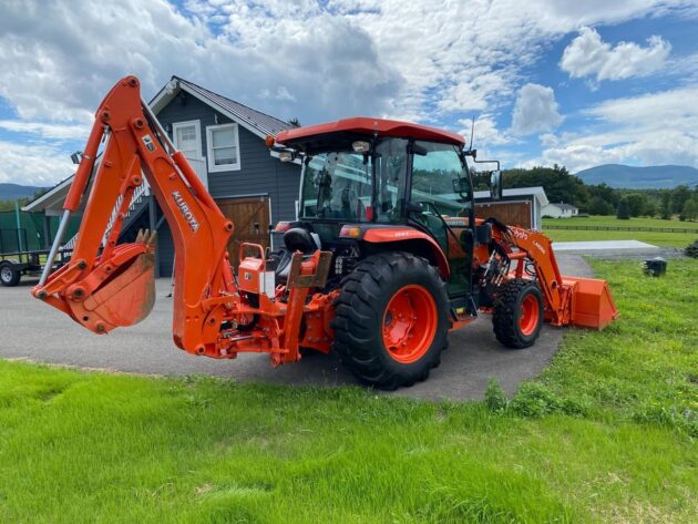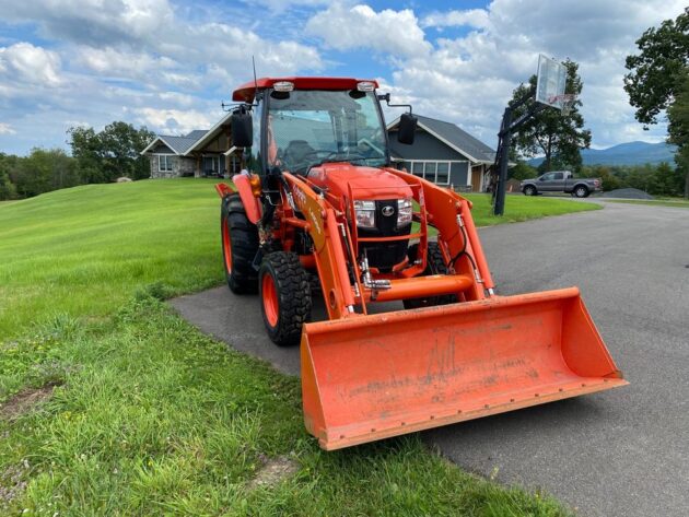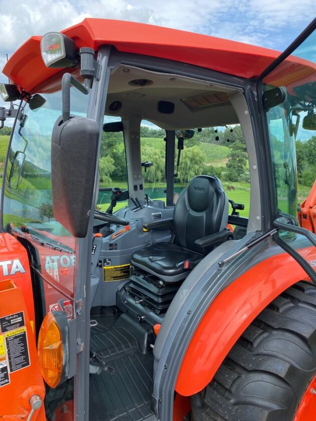 2015 Kubota L6060HSTC, 60 HP Diesel Engine, 4×4, Hydrostatic Transmission, Front End Loader, 72″ Quick Attach Bucket, Rear 540 PTO, Mid PTO Added, Three Point Hitch, Rear Quick Hitch, Quick Coupler Bucket, Power Steering, Fully Enclosed Cab, Air Conditioning / Heater.