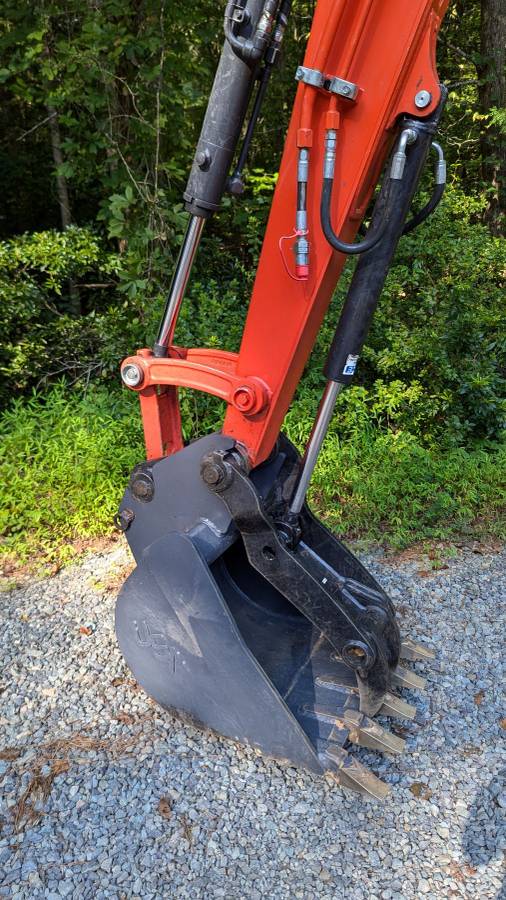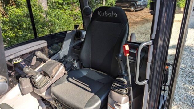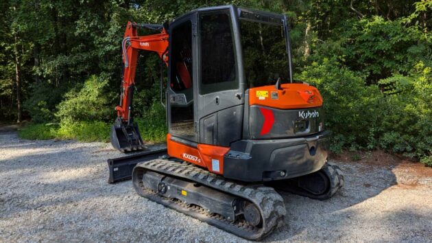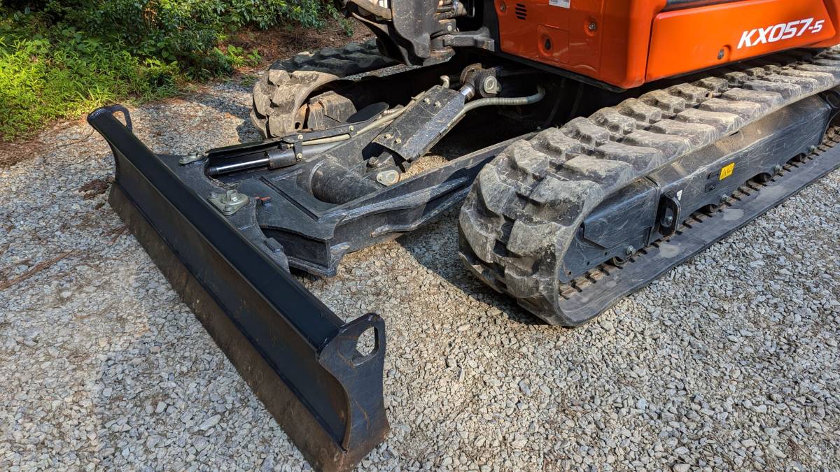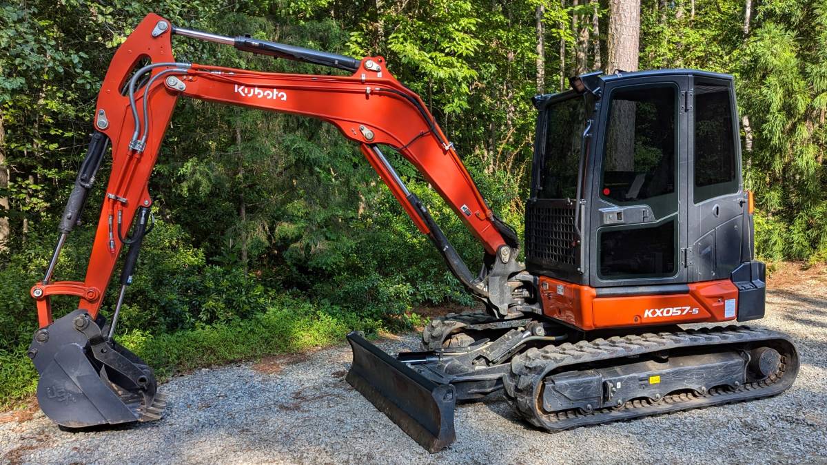 2023 Kubota KX057-5 Mini Excavator, 236 Hours, 47 Horsepower, Tracks, Two Speed Travel Transmission, Angle Blade, Auxiliary Hydraulics, 24 Inch Bucket, Rear Counter Weights, Hydraulic Thumb, Long Arm, Fully Enclosed Cab, Air Conditioning, Bluetooth Radio, Heat, Air Suspension Seat.