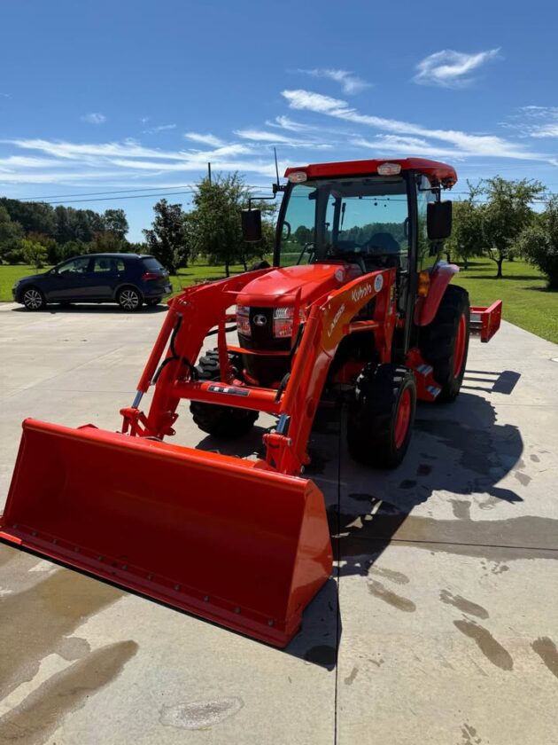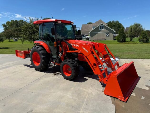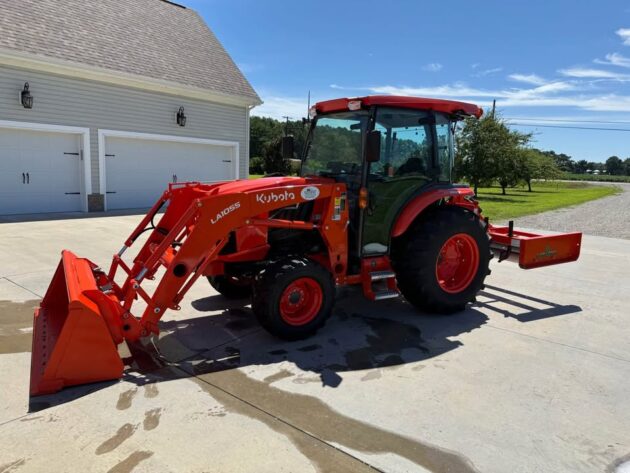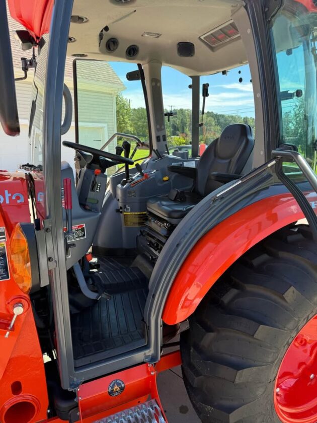2023 Kubota L6060HSTC, 60 HP Diesel Engine, 4×4, Hydrostatic Transmission, Front End Loader, 72″ Quick Attach Bucket (bolt-on cutting edge), Rear 540 PTO, Mid PTO Added, Three Point Hitch, Rear Quick Hitch, Quick Coupler Bucket, Power Steering, Fully Enclosed Cab, Air Conditioning / Heater.